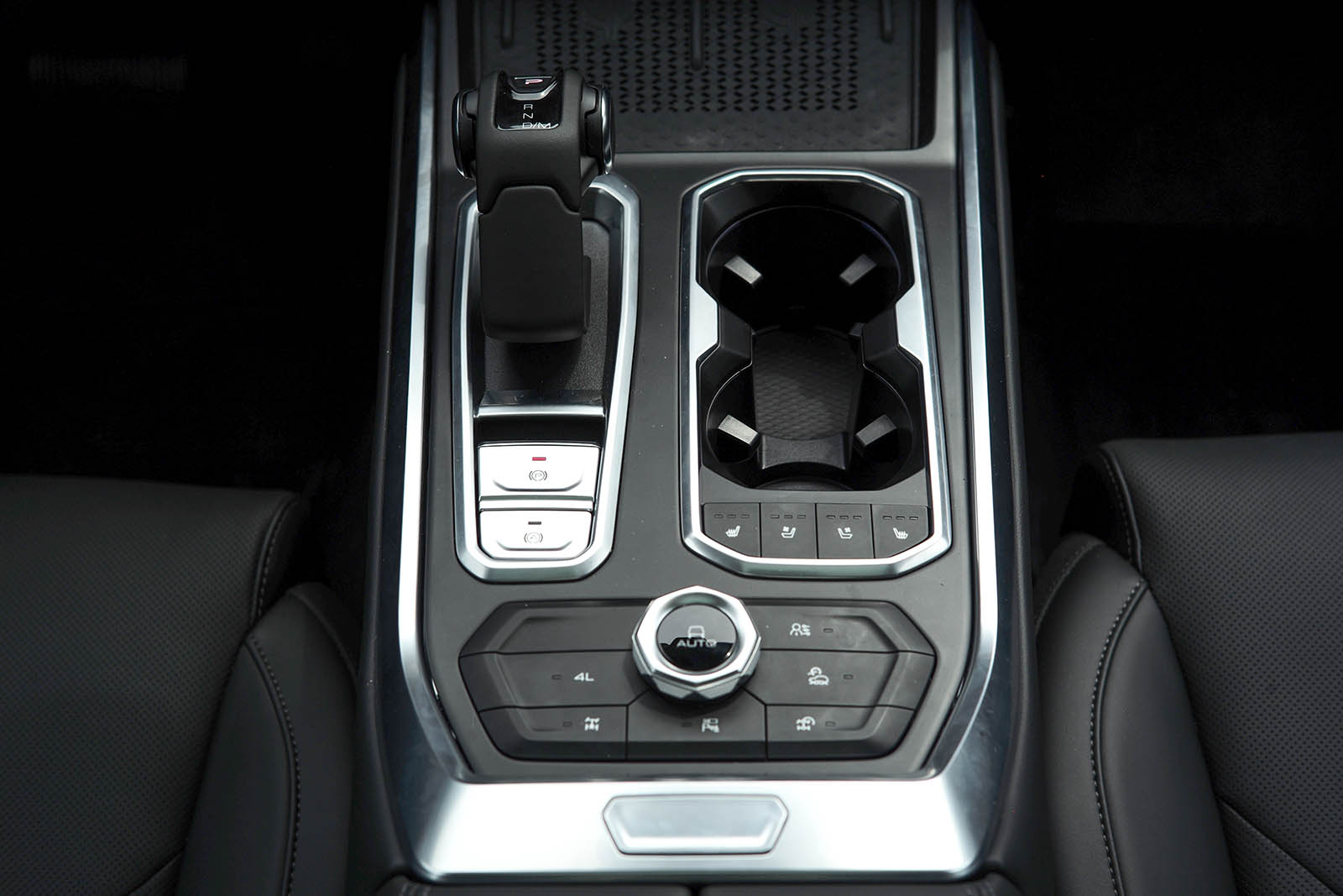 屏幕下方是常用功能的物理按键与两个50W手机无线充电模块,这些都是非常实用的功能,尤其是对于硬派越野车来说,绝对是加分项。