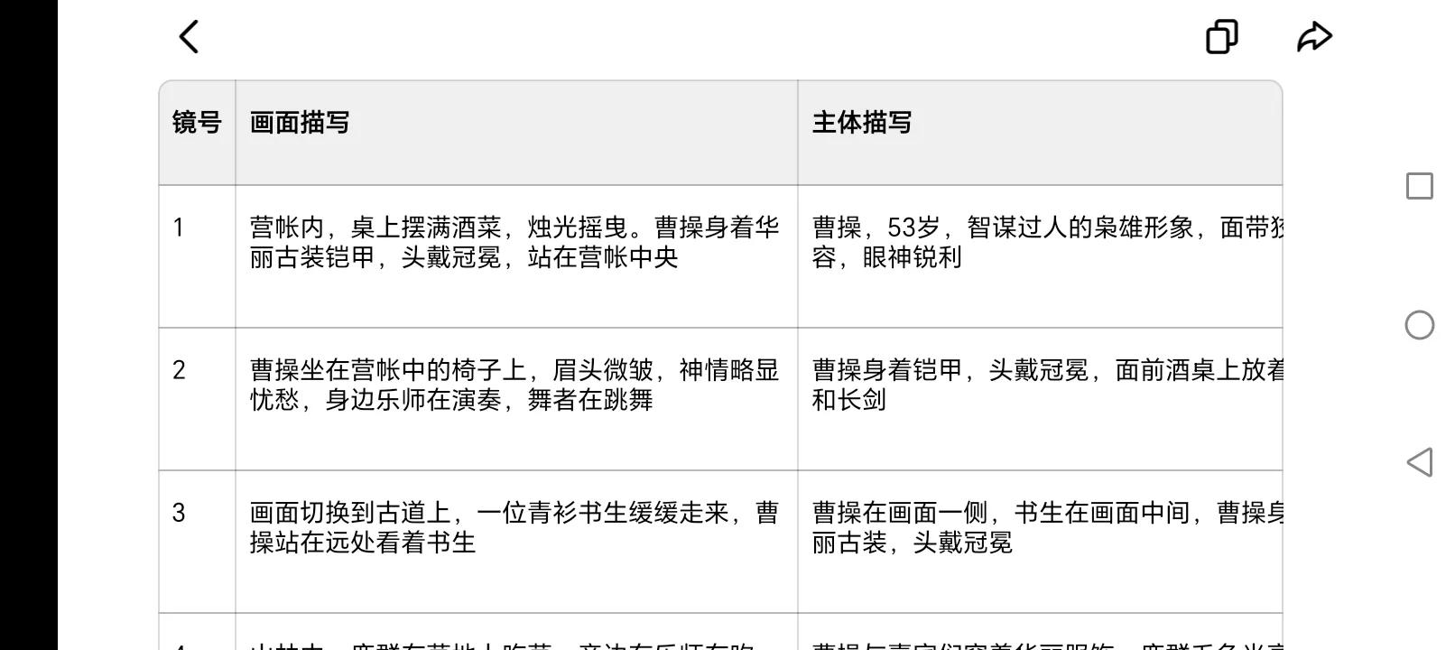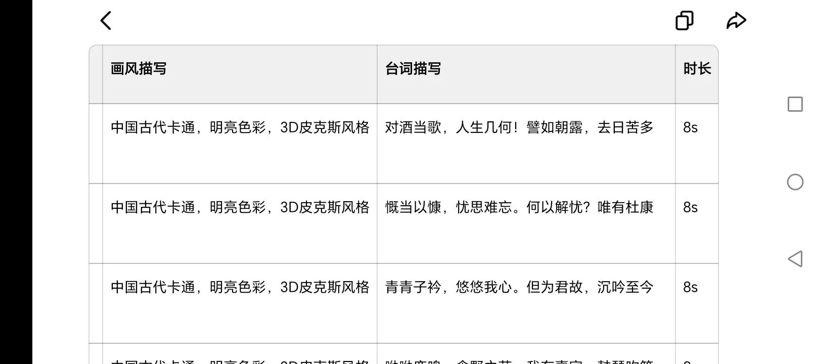 如果要每一个分镜有一个复制按钮的话,可追发一句:“每个分镜分表格生成”。