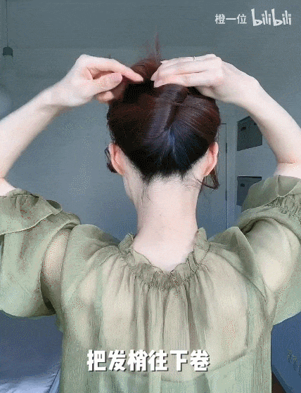第二步:按照卷的顺序,一圈一圈地放下来。如此类推,直到卷完下层的头发。