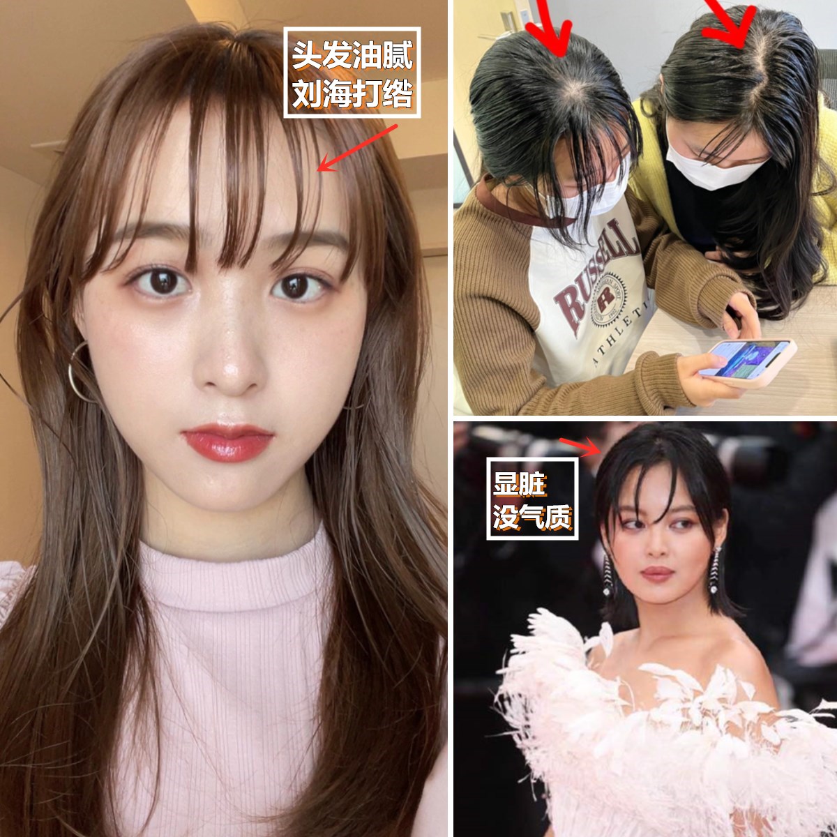 女生的头发一旦油腻腻的,哪怕颜值再高,看起来都是邋遢、土气,特别是有刘海的发型,刘海一出油就容易变成一缕一缕的,看起来即没有精气神,也没有气质。